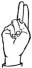На ћирилици написано РУЖИЦА КОЈОВИЋ састоји се из 13 слова [?]. Исписано ћириличном једноручном азбуком за глувонеме: